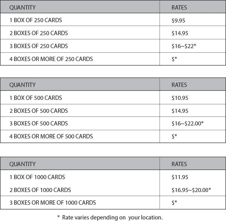 Shipping Rates for Business Cards